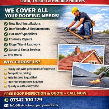 At first choice property services We have been trading for three generations We are very reputable and professional company With Very affordable prices We offer guarantees from five years on repairs up to 20 years on rear roofs our warranty service is outstanding And the attention to detail is phenomenal We pride ourselves of being the best in the business