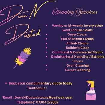Hi my name is Shannon - Business - DoneNDustedCleaning I clean daily for new clients, regular clients, commercial cleans, showroom cleans, End of tenancy clean. I have a strong eye for detail and love to leave the environment i was working in smelling fresh and looking immaculate.