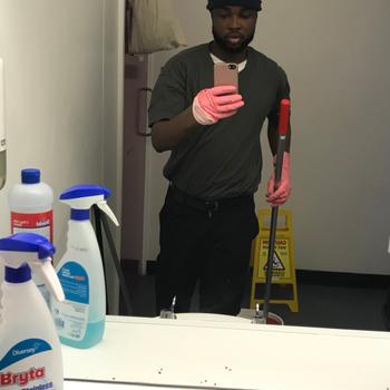 I proffer standard cleaning service, mopping floors, cleaning off surfaces, changing bins, hovering, kitchen cleaning, toilet, glass , walls and so on